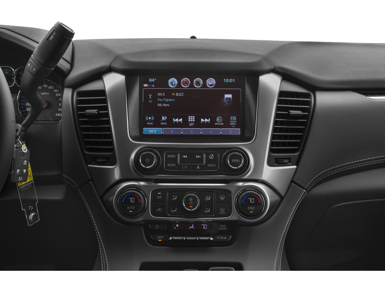 - Audio system, 8" diagonal color touch-screen with Chevrolet Infotainment AM/FM stereo with seek-and-scan and digital clock, includes Bluetooth® streaming audio for music and select phones; voice-activated technology for radio and phone; and Shop with the ability to browse, select and install apps to your vehicle. You can customize your content with audio, weather and more; featuring Apple CarPlay and Android Auto capability for compatible phones; 5 USB ports and 1 auxiliary jack (Includes 2 USB ports when (AZ3) Split-bench front seat is ordered.)